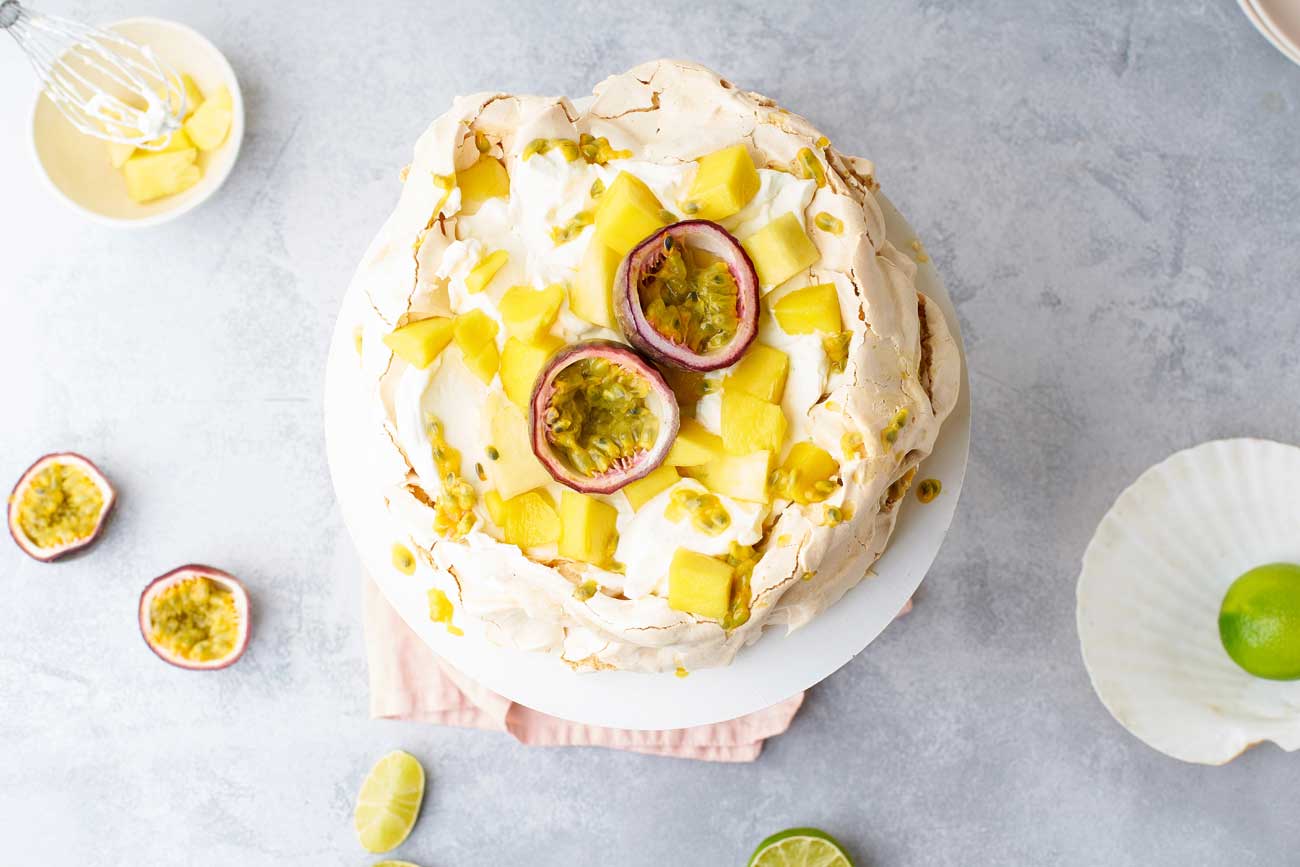 - Pavlova mit Vanille-Sahne & Passionsfrucht